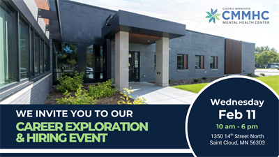 Central Minnesota Mental Health Center invites qualified individuals with prior mental health experience to explore full-time opportunities within our Crisis Residential, Mobile Crisis Response, and Crisis Call Center programs. This open-house hiring event offers the chance to meet our crisis teams, learn about career pathways, ask questions, and apply on-site. Attendees can engage with hands-on tools used in crisis care, hear staff perspectives, and learn about the supportive, mission-driven environment at CMMHC.